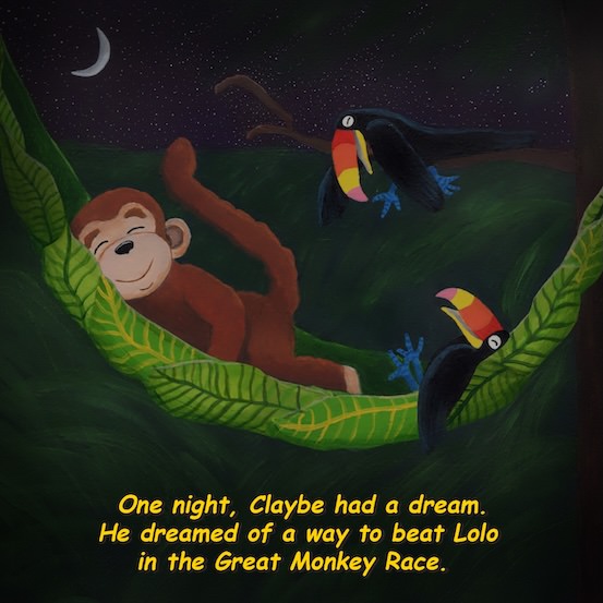 Claybe dreams of winning First Place, but he’s only the second fastest runner in Monkey Village. He wants to win SO BAD but he must beat the fastest monkey, his best friend Lolo! How far will Claybe go to beat his best friend to win First Place in The Great Monkey Race? That is what Claybe must decide. What does he decide to do?